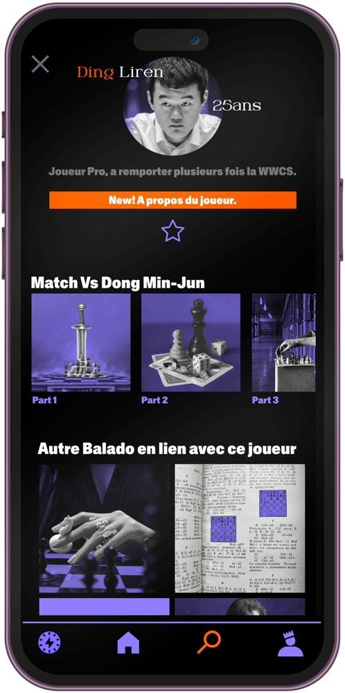 L’utilisateur peut écouter un match en audio, suivre les coups grâce à un